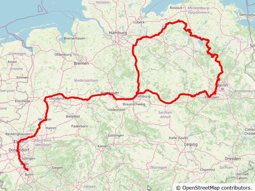 Startet man in Köln und peilt als Ziel die Quelle der Havel an, kommt man über den Daumen auf 950 Kilometer.